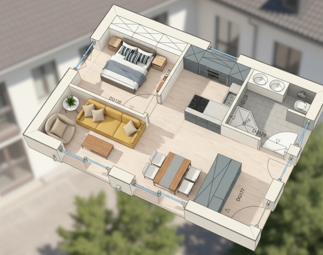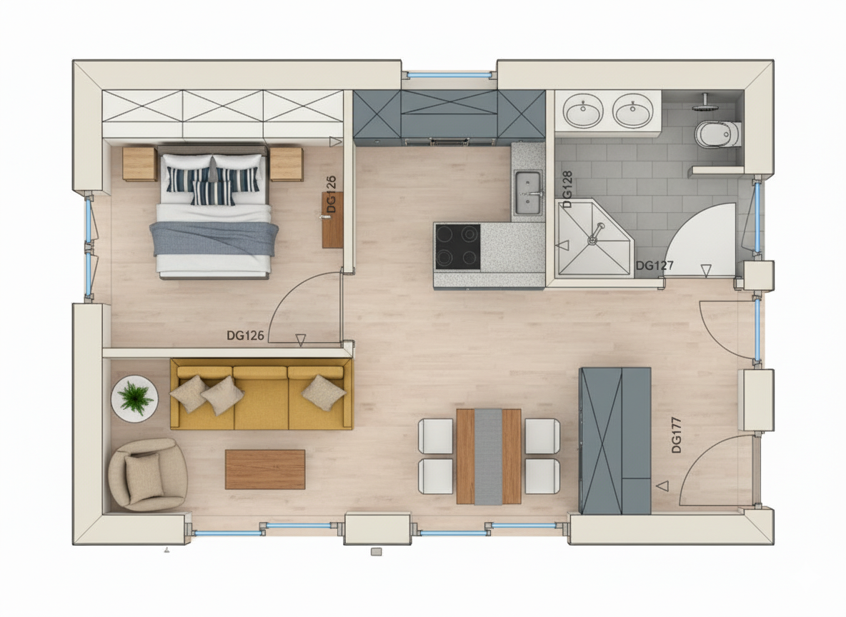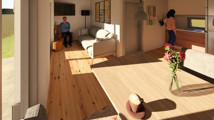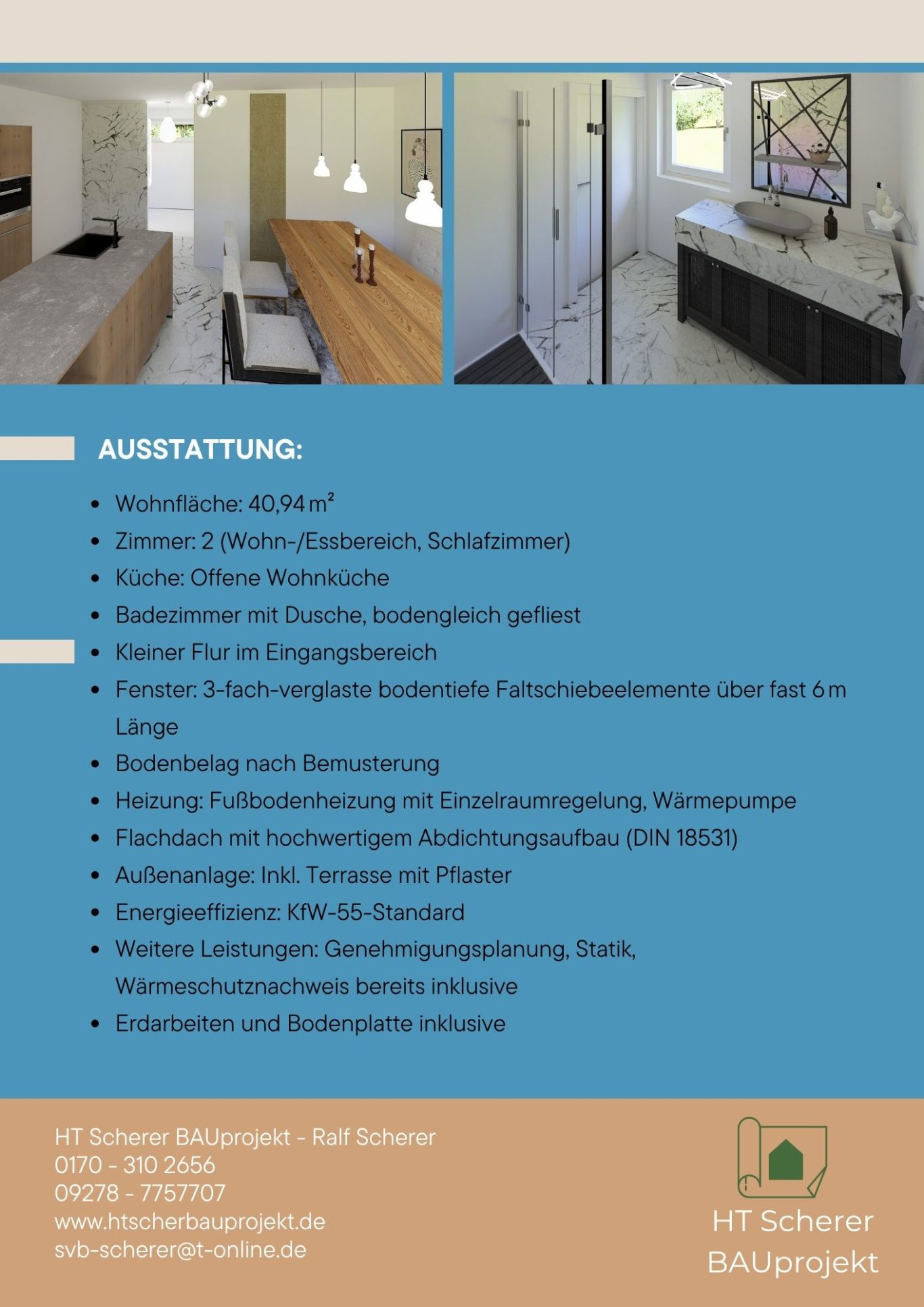 Der Bungalow „ARIELLA“ bietet 41 m² clever geplante Wohnfläche mit allem, was modernes Wohnen heute ausmacht – kompakt, hochwertig und sofort bezugsfertig inkl. Terrasse und Bodenplatte.